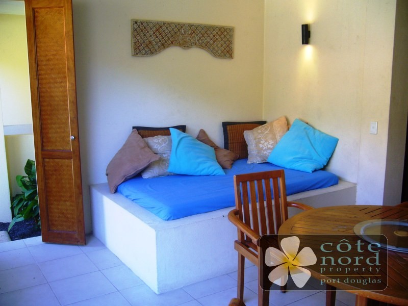 This 3 bedroom, 2 bathroom villa has a spacious main bedroom on the ground floor with a very private walled courtyard of an additional 28m2 exclusively yours to use, and the ensuite has twin showers. Spacious lounge dining area, modern kitchen, lanai type patio with inbuilt daybed for relaxing and enjoying sunshine and breezes, are on the ground floor. Upstairs are two bedrooms, BIRs, bathroom. Being sold fully furnished, the property has an excellent rental history so will appeal to a savvy investor, but looking ahead would also suit an owner-occupier looking to buy quality yet affordable Port Douglas real estate for personal use .
